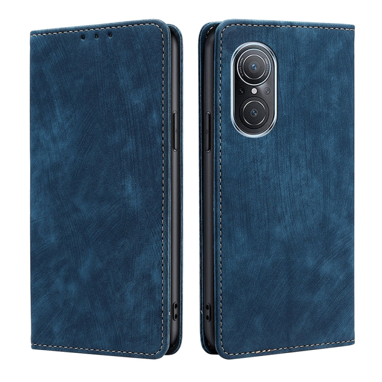 Funda de Cuero Magnética para Huawei Nova 9 Se 4G con Rfid y Cepillo Antirrobo (Azul)