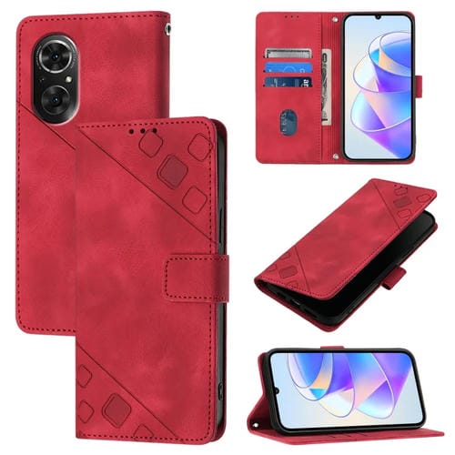 Funda de Cuero Skin Feel para Huawei Nova 9 Se en Relieve (Rojo)