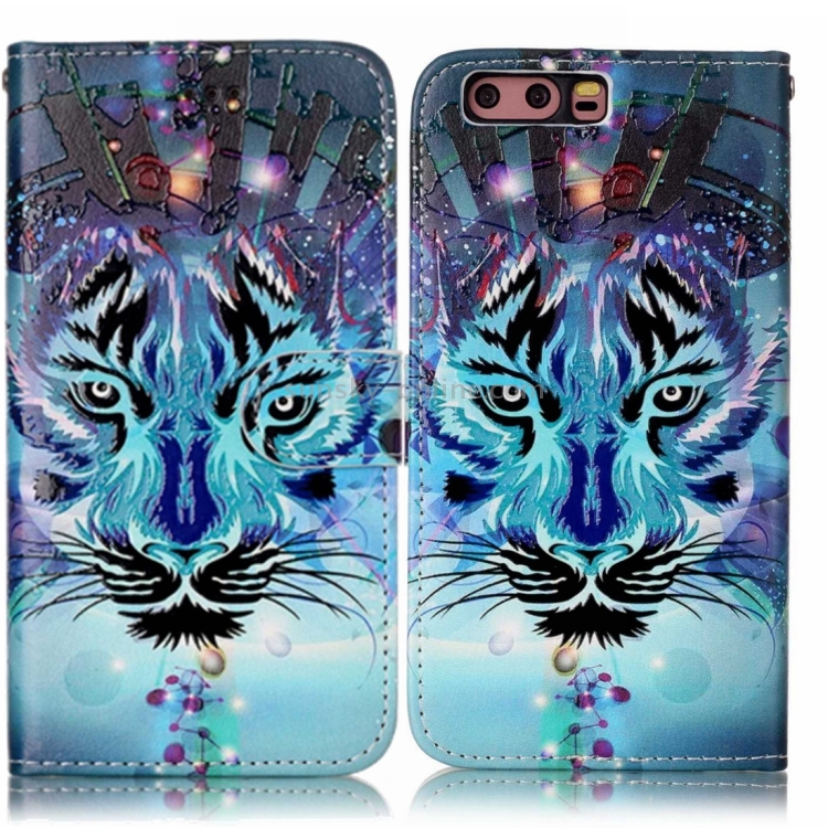Funda de Cuero para Huawei P10 con Tapa Horizontal, Patrón Lobo en Relieve, Soporte, Ranuras para Tarjetas y Billetera