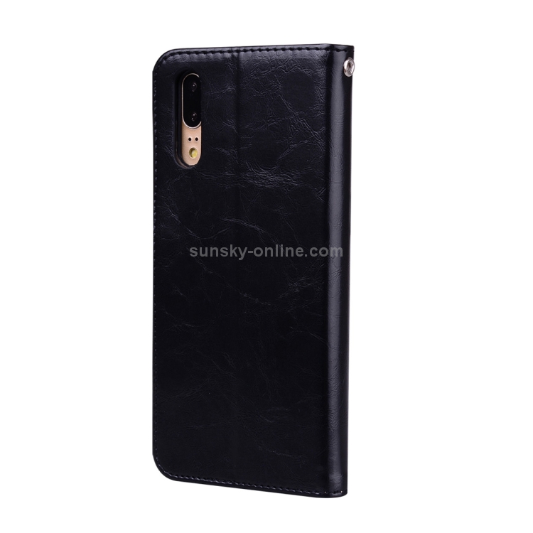 Funda de Cuero para Huawei P20 Business Style Oil Wax con Tapa Horizontal, Soporte y Ranuras (Negro)