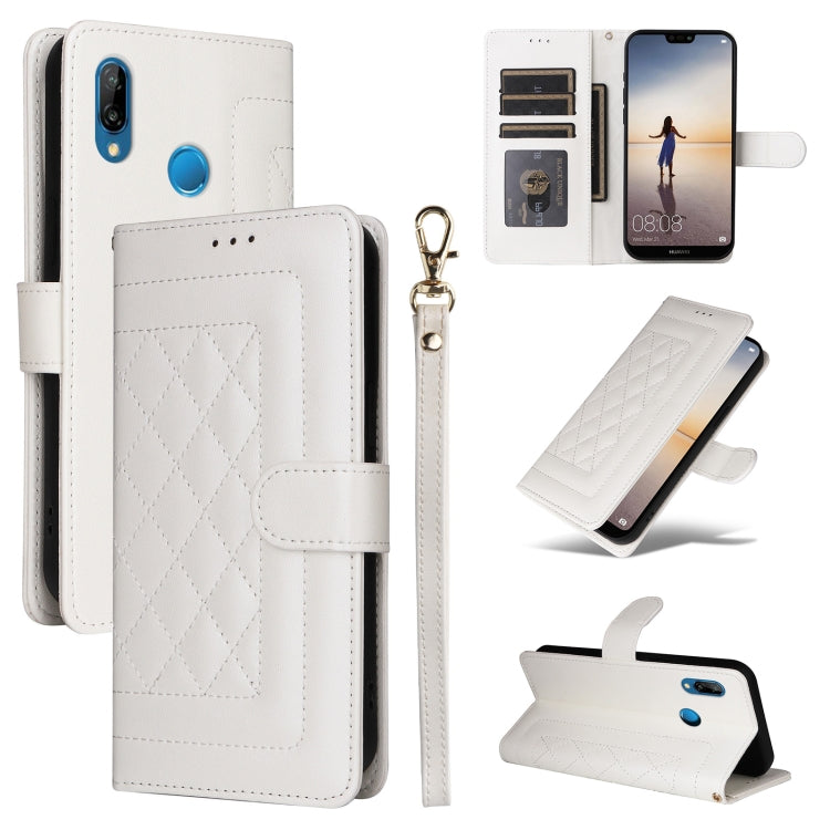 Funda de Teléfono Huawei P20 Lite con Tapa de Cuero Diamond Lattice (Blanco)