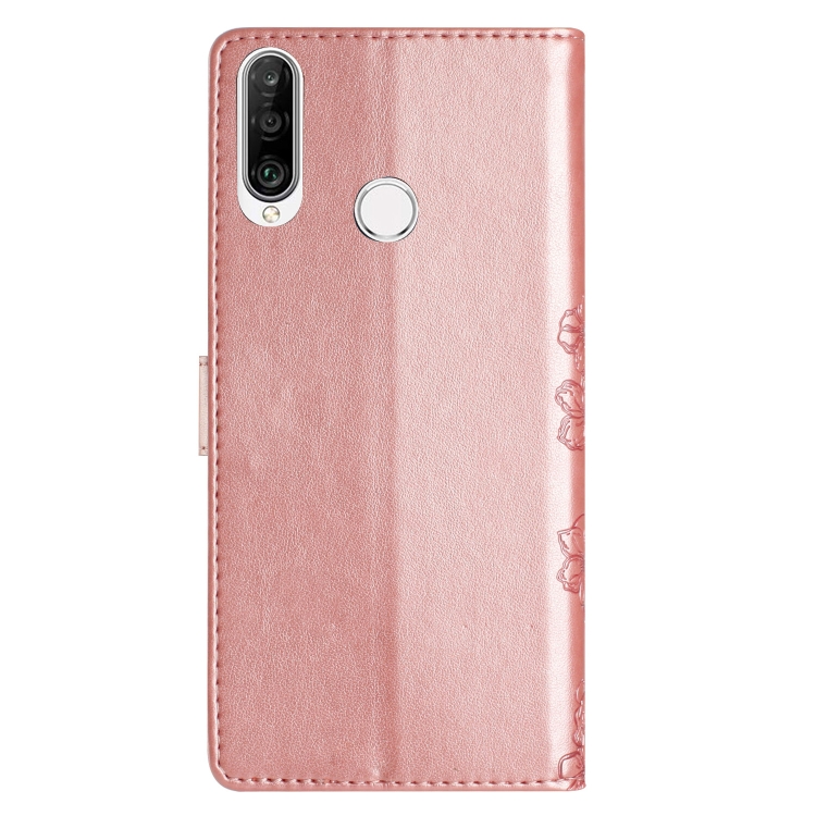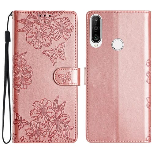 Funda para Huawei P30 Lite Cherry Blossom Butterfly Skin Feel de PU en Relieve (Oro Rosa)