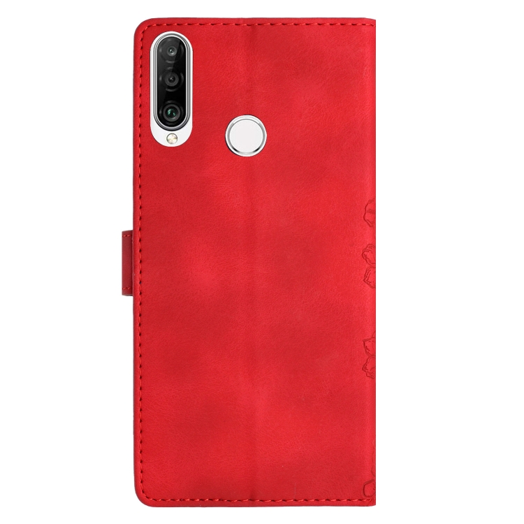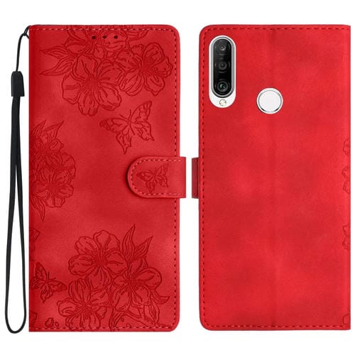 Funda para Huawei P30 Lite Cherry Blossom Butterfly Skin Feel de PU en Relieve (Rojo)
