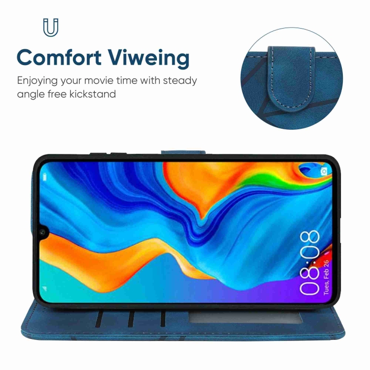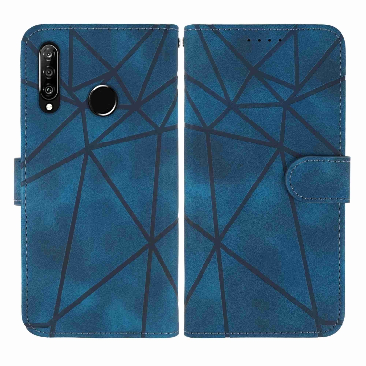 - 1x Funda de Cuero para Huawei P30 Lite con Líneas Geométricas (Azul)