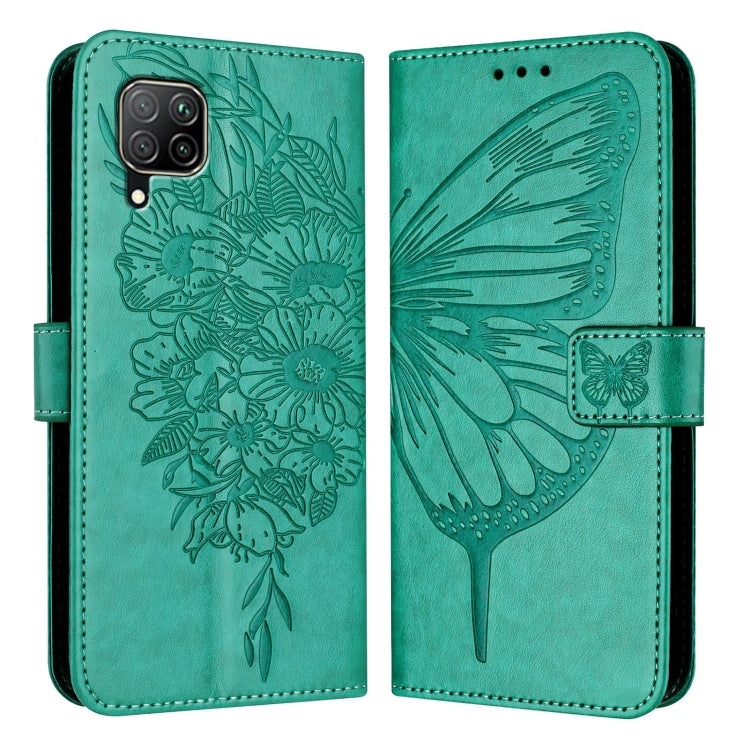 Funda para Huawei P40 Lite 4G y Nova 6 Se de Cuero con Mariposa en Relieve (Verde)