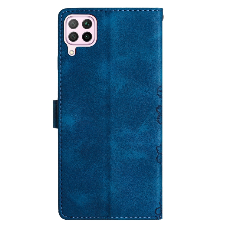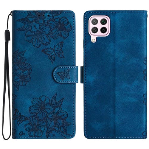 Funda para Huawei P40 Lite Cherry Blossom Butterfly Skin Feel PU en Relieve (Azul)