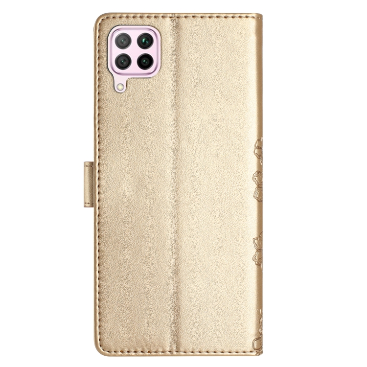 - 1x Funda para Huawei P40 Lite Cherry Blossom Butterfly Skin Feel de PU en Relieve (Oro)