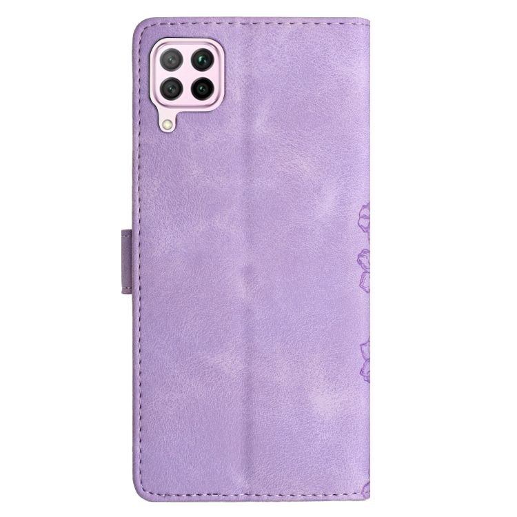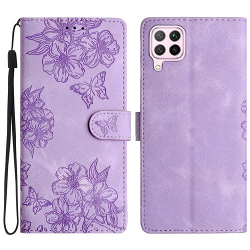 - 1x Funda para Huawei P40 Lite Cherry Blossom Butterfly Skin Feel de PU en Relieve (Púrpura)
