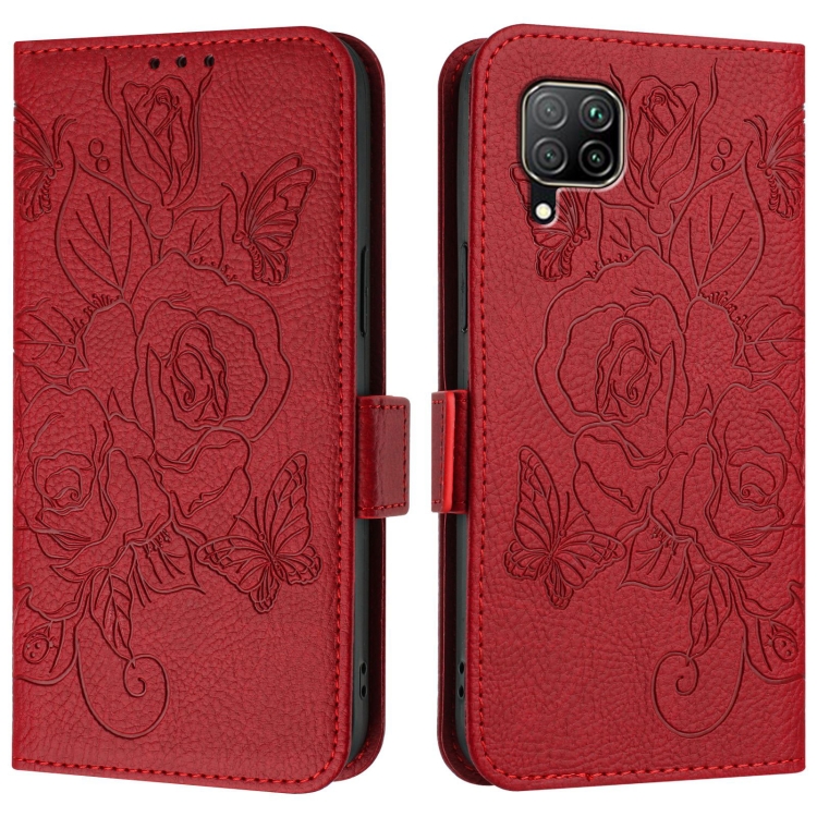 - 1x Funda para Huawei P40 Lite y Nova 6 Se Cuero Antirrobo RFID con Relieve (Rojo)