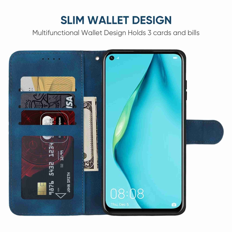 La Funda de Cuero para Huawei P40 Lite Skin Feel con líneas geométricas en color Azul es un Accesorio diseñado específicamente para proteger y complementar este modelo de Teléfono. Fabricada con materiales resistentes como PU y TPU, ofrece una protección integral contra caídas, arañazos y desgaste diario. Además, incorpora funcionalidades prácticas como ranuras para Tarjetas, compartimento para efectivo y una cartera con cremallera, facilitando el Almacenamiento seguro de objetos personales. Su diseño permite el acceso Completo a Botones, Puertos y Conexión de Auriculares sin necesidad de retirar la Funda. También cuenta con un Soporte integrado para facilitar videollamadas y visualización de contenido multimedia con manos libres, y una correa de mano para mayor comodidad en el transporte.