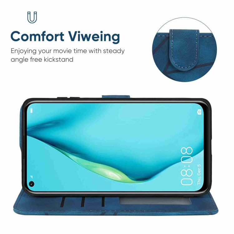 - 1x Funda de Cuero para Huawei P40 Lite Skin Feel con Líneas Geométricas (Azul)