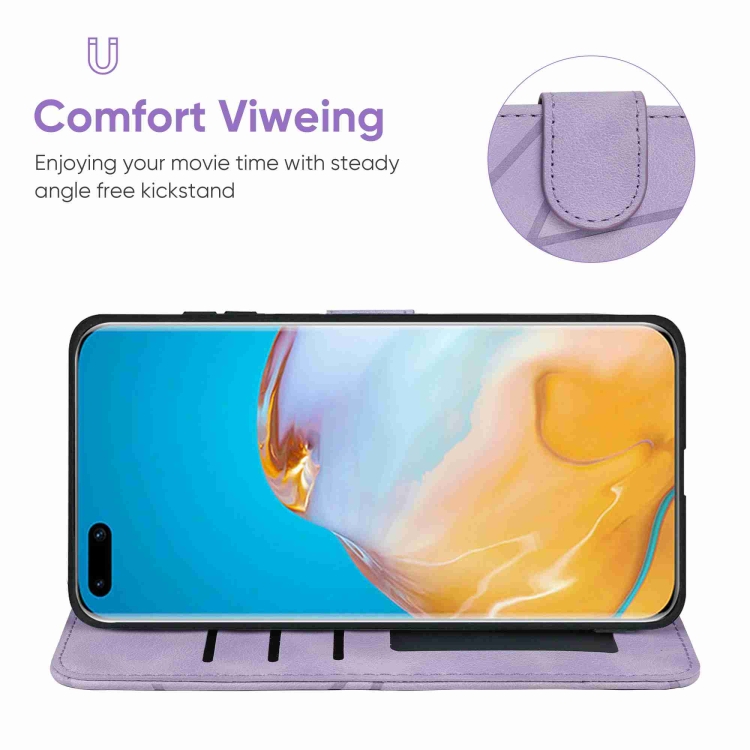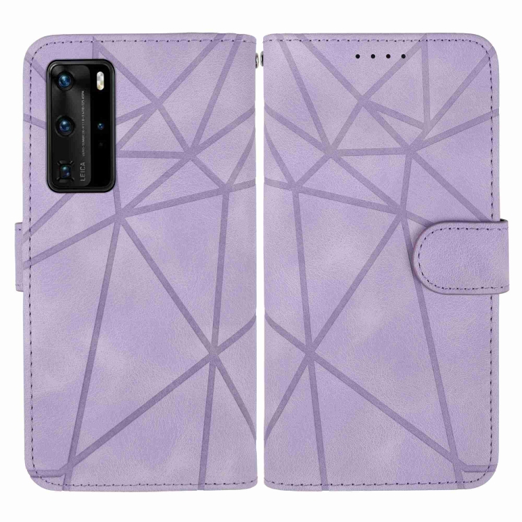 - 1x Funda de Cuero para Huawei P40 Pro Skin Feel con Líneas Geométricas (Púrpura)