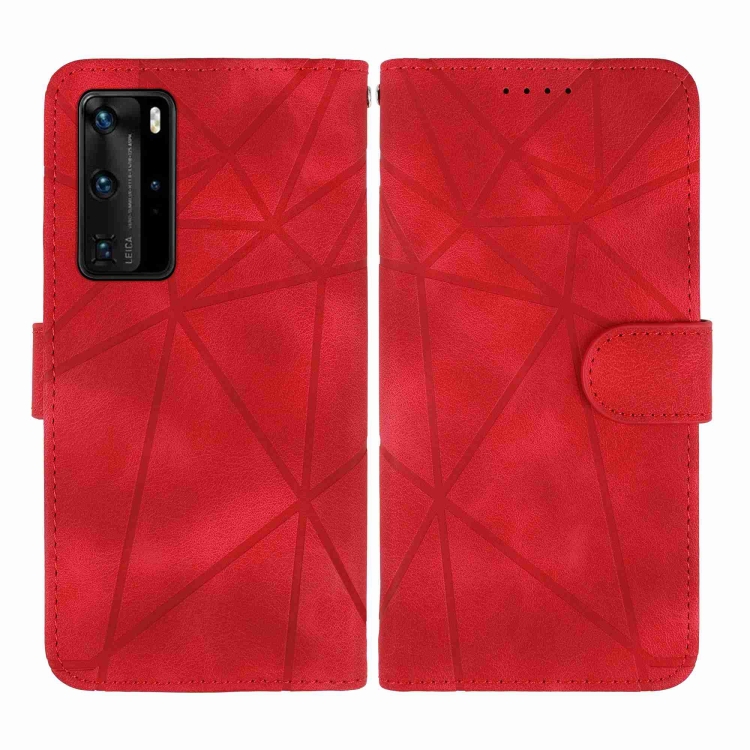 - 1x Funda de Cuero para Huawei P40 Pro con Líneas Geométricas (Rojo)