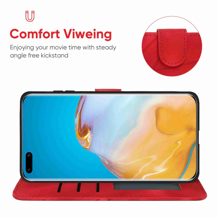 La Funda de Cuero para Huawei P40 Pro con líneas geométricas en color Rojo es un Accesorio diseñado para ofrecer una protección integral y funcionalidad avanzada a este modelo específico. Fabricada con materiales de alta calidad como PU y TPU, esta Funda combina durabilidad y resistencia al desgaste, asegurando un uso prolongado. Su diseño incluye ranuras para Tarjetas, un compartimento con cremallera para efectivo y espacio para billetes pequeños, facilitando la organización diaria. Además, permite el acceso Completo a todos los Botones, Puertos y conexiones sin necesidad de retirar la Funda, manteniendo la comodidad y usabilidad del dispositivo. Su estructura anticaída con refuerzo en las cuatro esquinas protege eficazmente contra impactos y arañazos, mientras que el Soporte integrado posibilita la visualización de contenido multimedia o videollamadas con manos libres. La correa de mano incluida añade practicidad en el transporte del Teléfono.