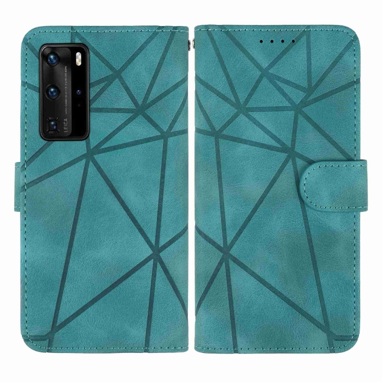 - 1x Funda de Cuero para Huawei P40 Pro con Líneas Geométricas (Verde)