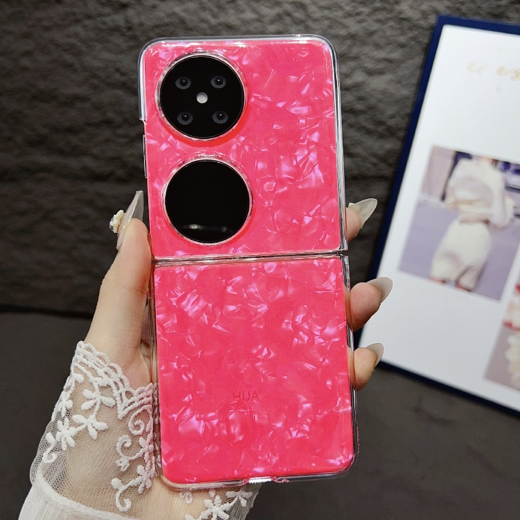 - 1x Funda para Huawei P50 Pocket con Textura de Concha Nacarada (Rojo)