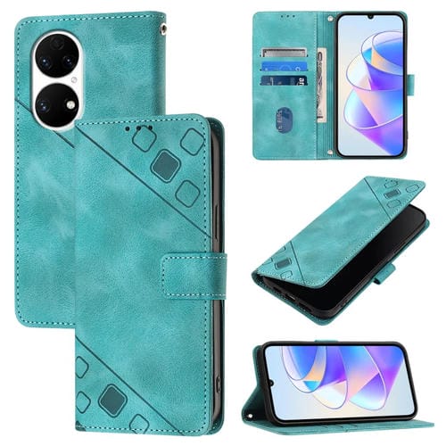 - 1x Funda de Cuero para Huawei P50 Skin Feel en Relieve (Verde)