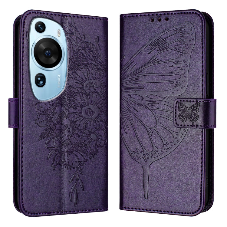 Funda de Cuero para Huawei P60 con Mariposa en Relieve Artístico (Púrpura Oscuro)