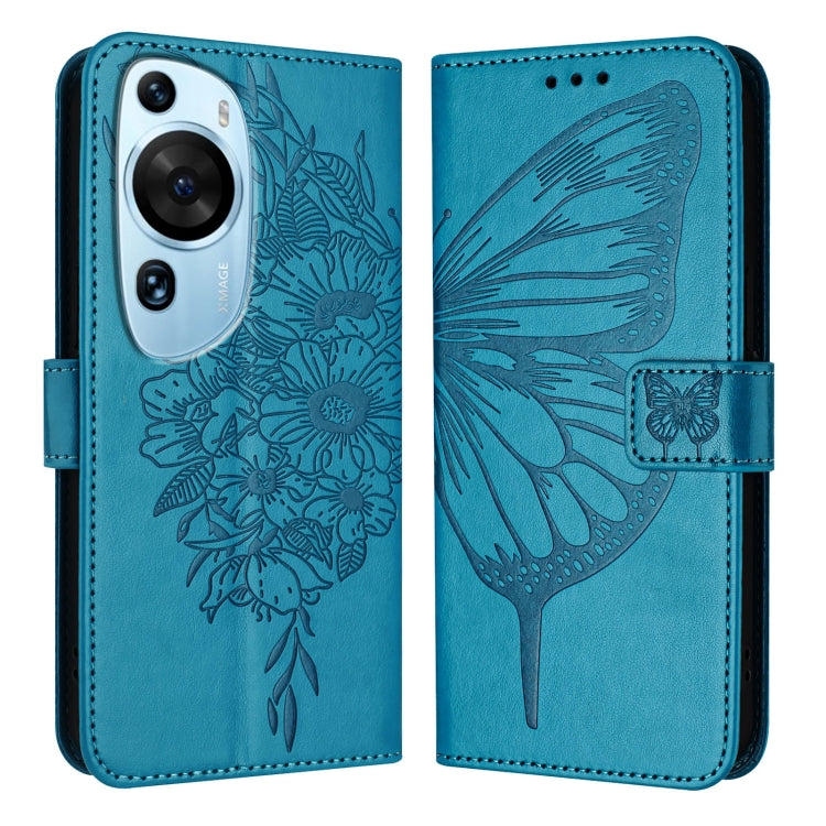 Funda de Teléfono Huawei P60 Cuero con Mariposa en Relieve Artístico (Azul)