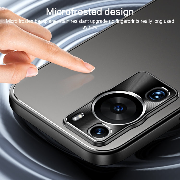 Estuche para Huawei P60 / P60 Pro R-Just RJ-61 TPU + PC Esmerilado con Galvanoplastia y Soporte (Plateado)