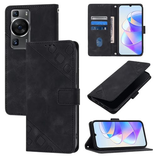 Funda de Cuero Skin Feel para Huawei P60 y P60 Pro en Relieve (Negro)