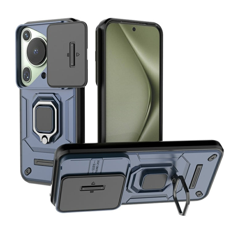 Funda para Huawei P70 Art 5G con Sliding Camshield, TPU + PC, Soporte, a Prueba de Golpes (Azul)