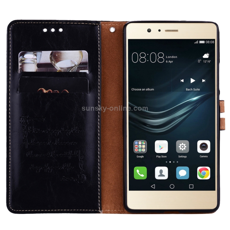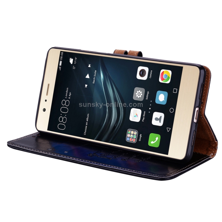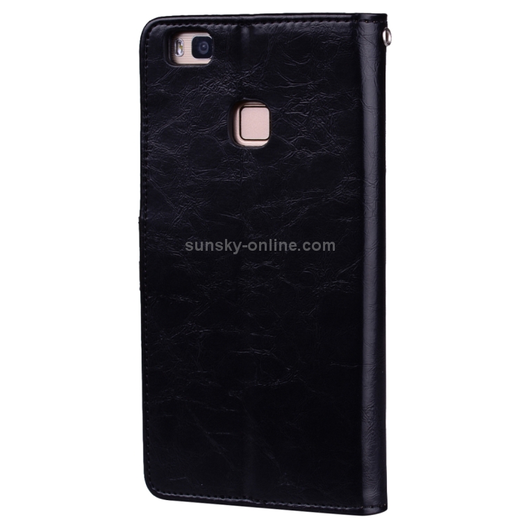 Funda de Cuero para Huawei P9 Lite Business Style con Tapa Horizontal, Soporte, Ranuras para Tarjetas y Billetera (Negro)