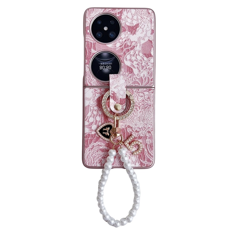 Estuche para Huawei Pocket 2 Cobertura Total Bordado con Cadena de Cuentas (Rosa)