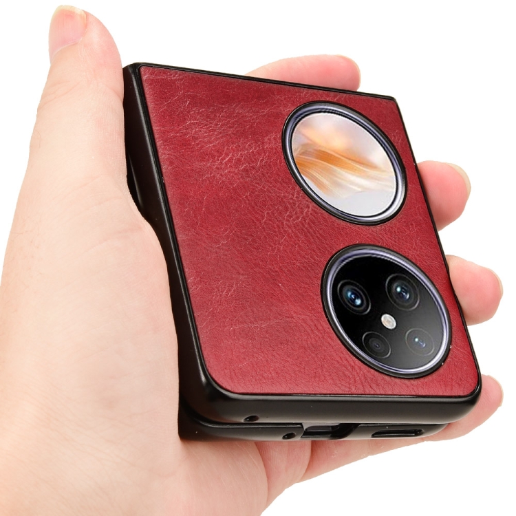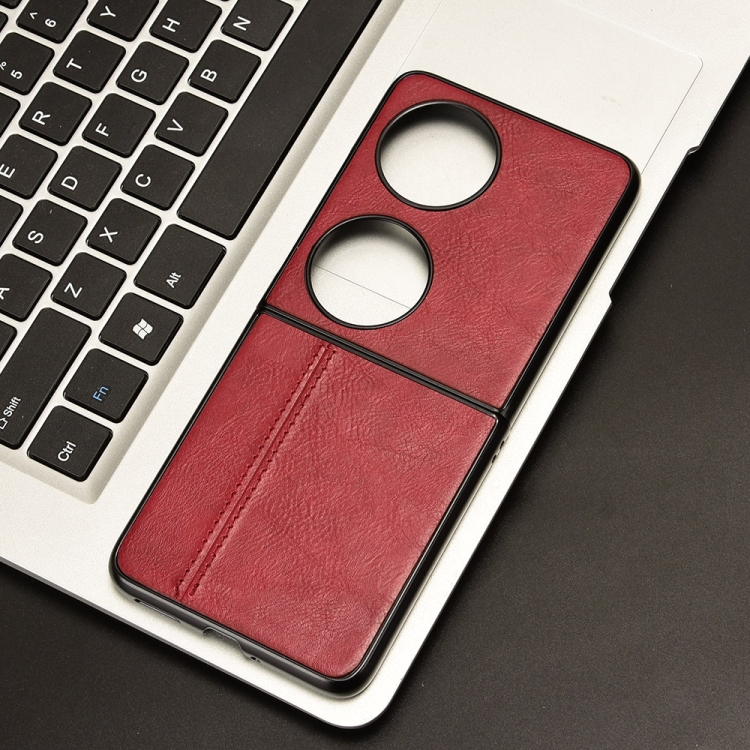 Funda para Huawei Pocket 2 con Contraportada de Costura y Patrón de Vaca (Rojo)