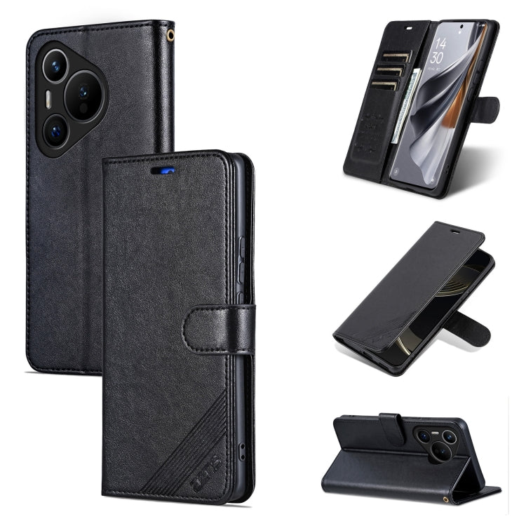 Funda de Cuero para Huawei Pura 70 Azns con Tapa y Textura de Piel de Oveja (Negro)