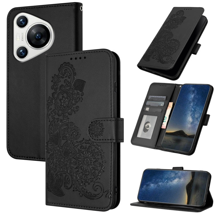 Funda de Cuero para Huawei Pura 70 Datura Flower con Tapa en Relieve (Negro)