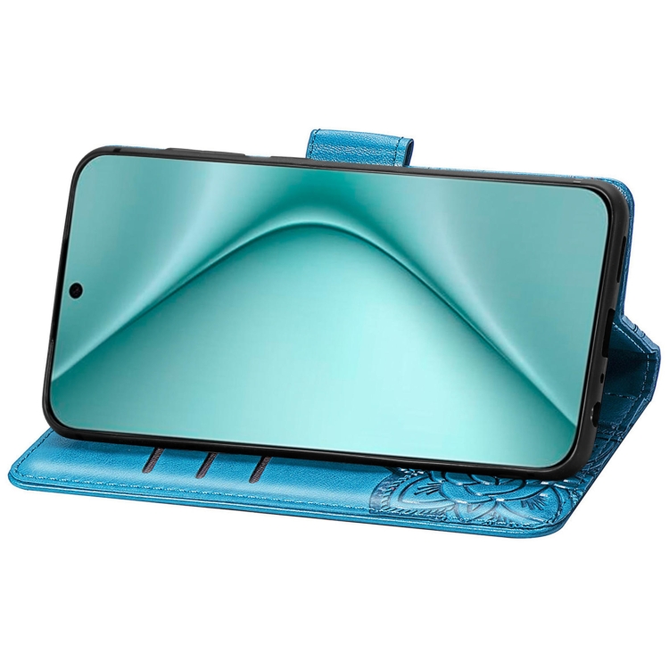 Funda para Huawei Pura 70 de Cuero con Relieve de Flor y Mariposa (Azul)