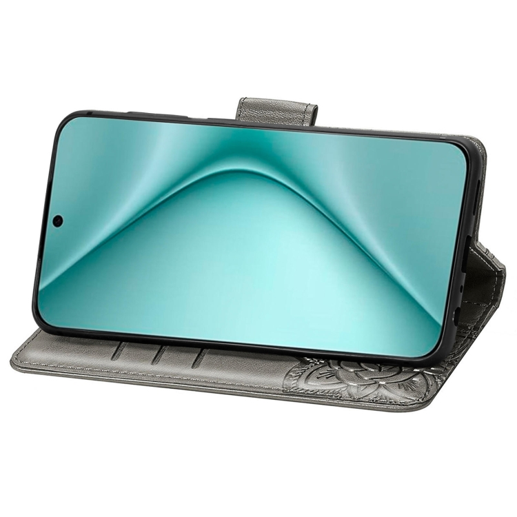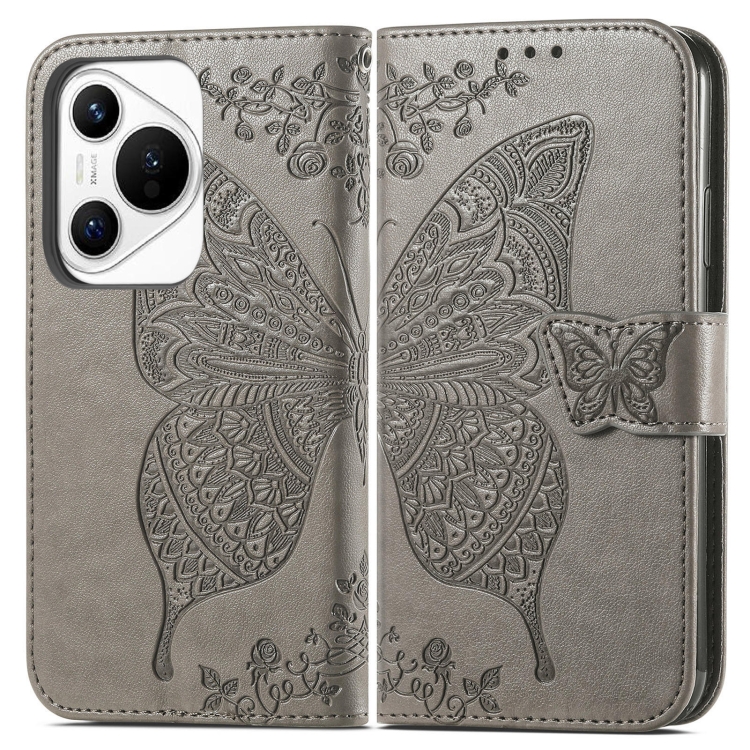 Funda para Huawei Pura 70 de Cuero con Relieve Flor de Amor y Mariposa (Gris)