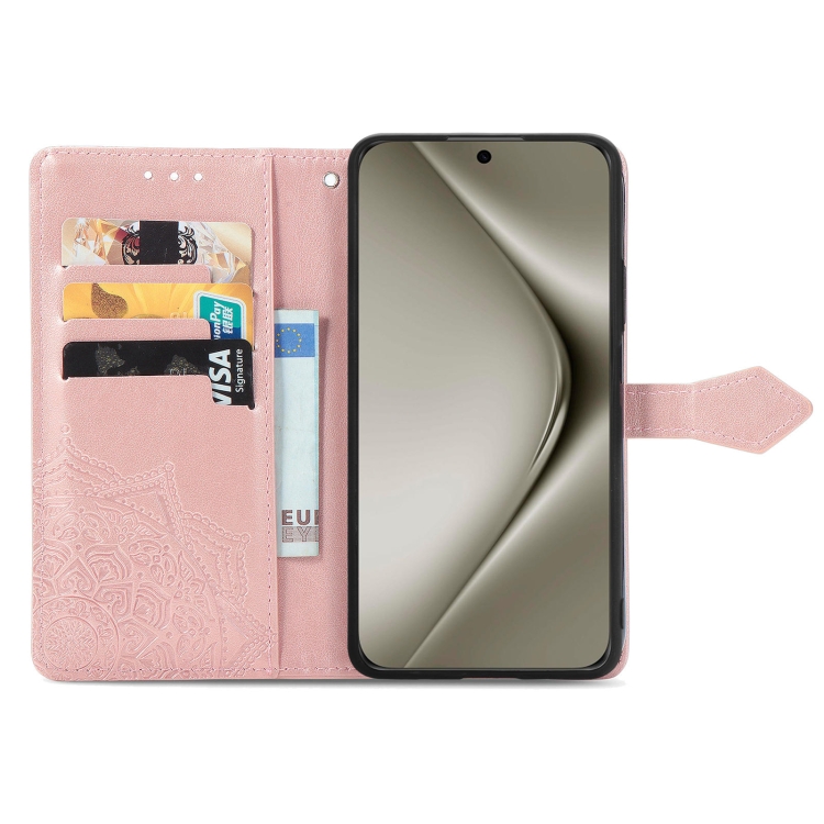 Funda para Huawei Pura 70 de Cuero con Relieve de Flores Mandala (Oro Rosa)