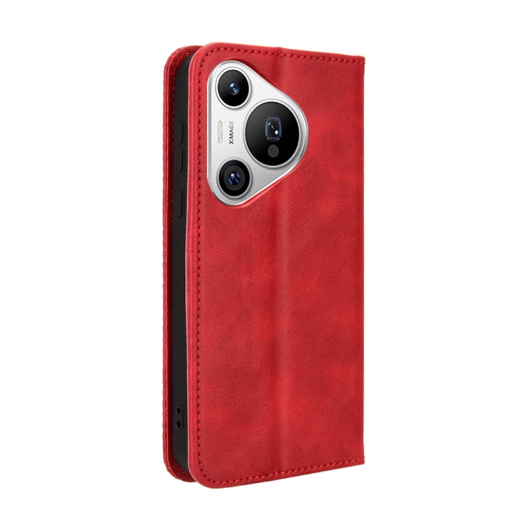 Funda para Huawei Pura 70 de Cuero con Textura Retro y Hebilla Magnética (Rojo)