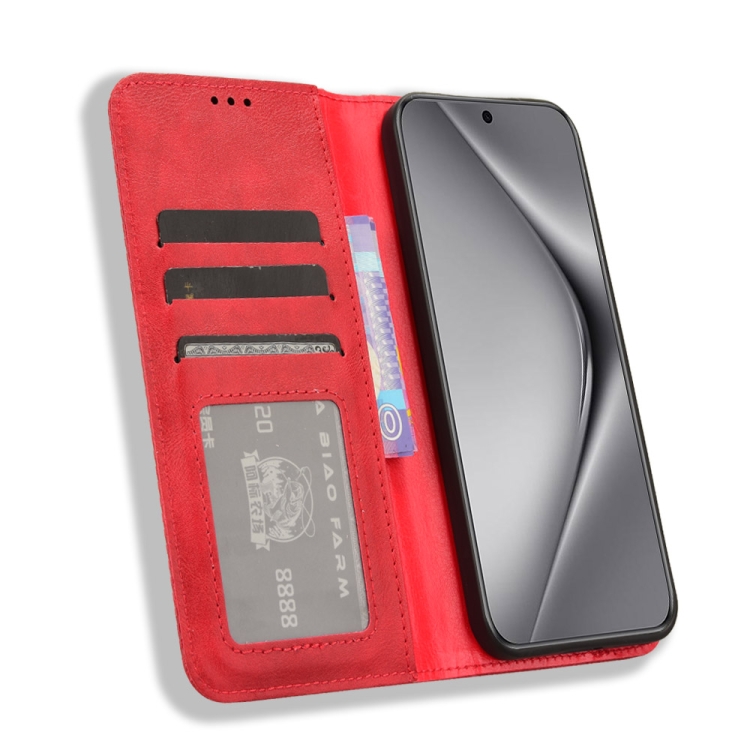 • 1x Funda para Huawei Pura 70 de Cuero con Textura Retro y Hebilla Magnética (Rojo)