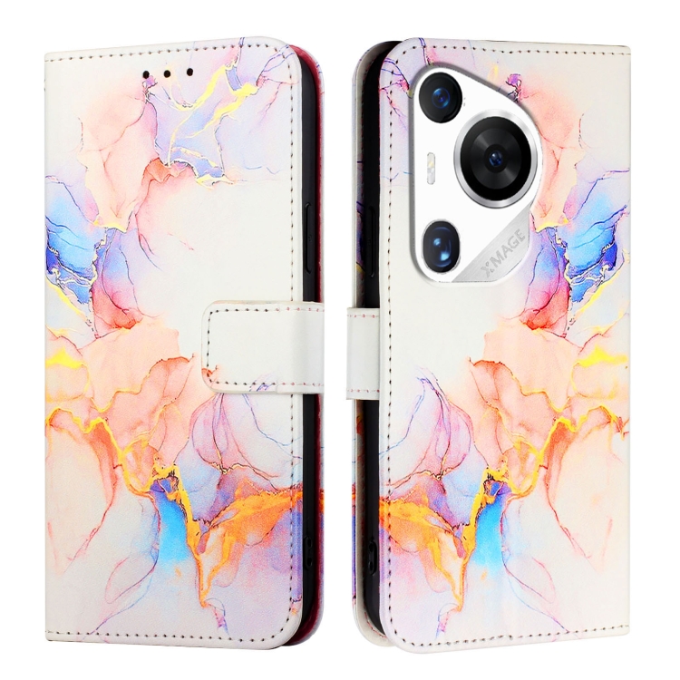 Funda de Cuero con Tapa para Huawei Pura 70 Pro / 70 Pro + Pt003 con Patrón Mármol (Blanco)