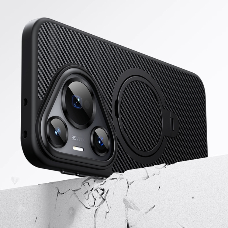 Estuche para Huawei Pura 70 Pro de Fibra de Carbono con Soporte Magsafe de Doble Anillo (Plata)