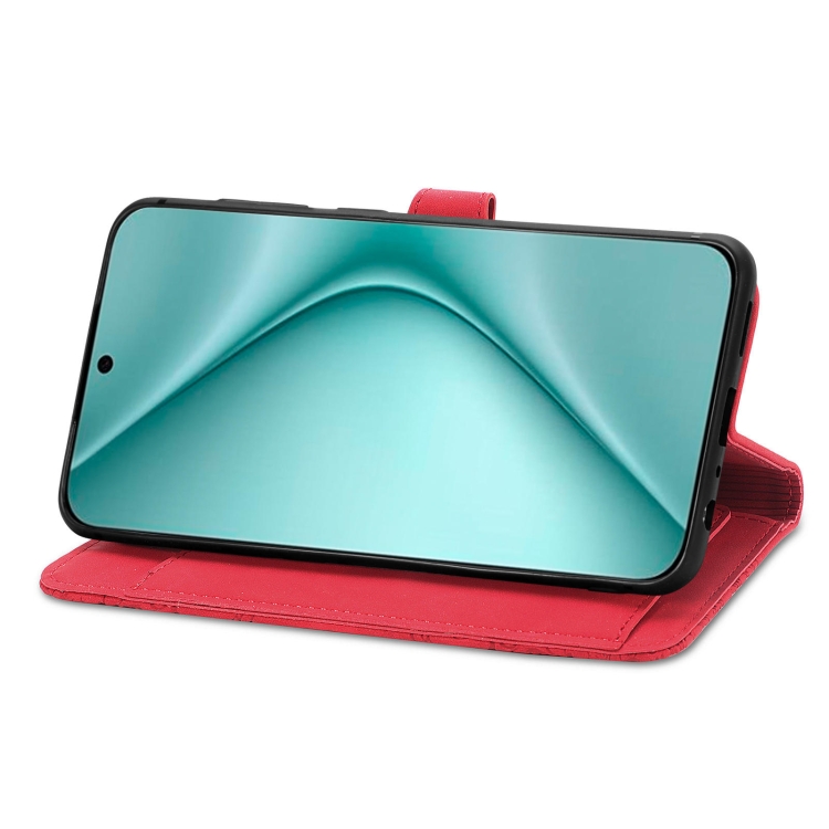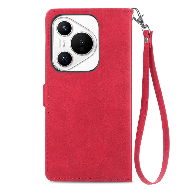 Funda de Cuero para Huawei Pura 70 Pro+ con Cremallera y Flores en Relieve (Rojo)