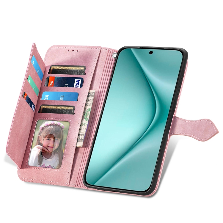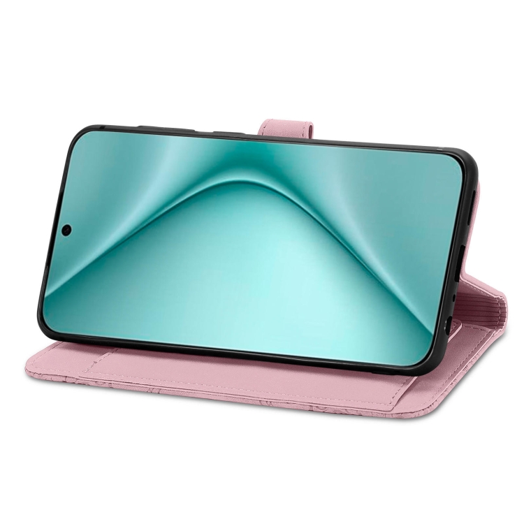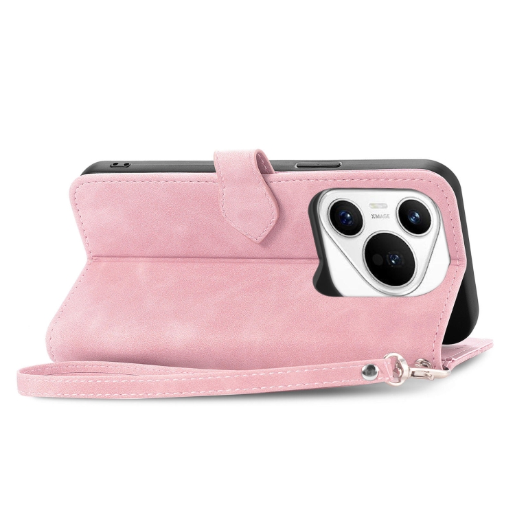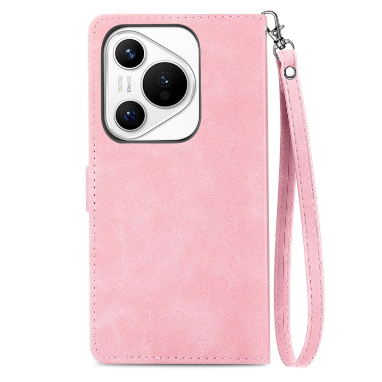 Funda de Cuero para Huawei Pura 70 Pro con Cremallera y Flores en Relieve (Rosa)