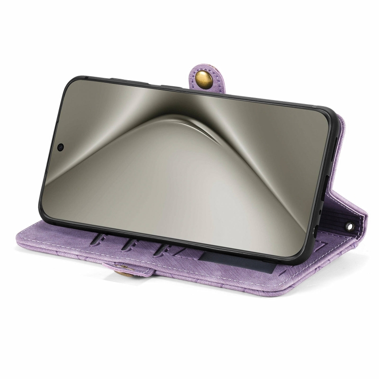 - 1x Funda de Cuero para Huawei Pura 70 Pro con Hebilla Lateral y Billetera con Cremallera (Púrpura)