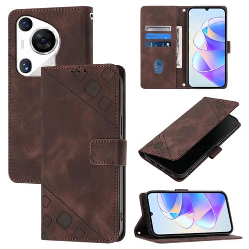 Funda de Cuero Huawei Pura 70 Pro Skin Feel para Teléfono en Relieve (Marrón)