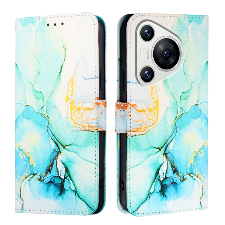 Funda de Cuero para Huawei Pura 70 Pt003 con Tapa y Patrón de Mármol (Verde)