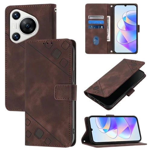 Funda de Cuero para Huawei Pura 70 Skin Feel en Relieve (Marrón)