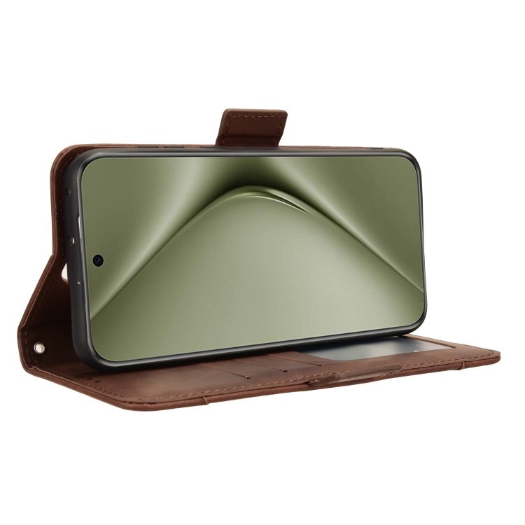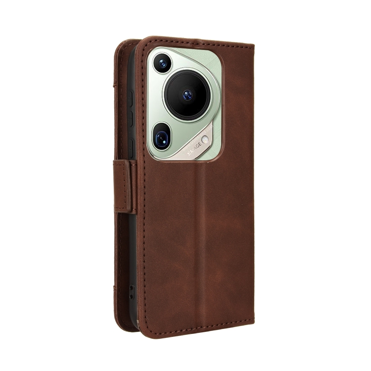 Funda de Cuero para Huawei Pura 70 Ultra Skin Feel con Textura de Becerro y Ranuras para Tarjetas (Marrón)