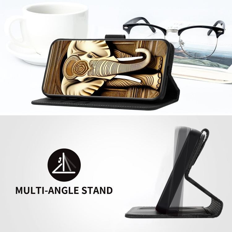 Funda de Cuero para Huawei Pura 70 Yx0060 con Relieve y Cabeza de Elefante con Cordón (Negro)