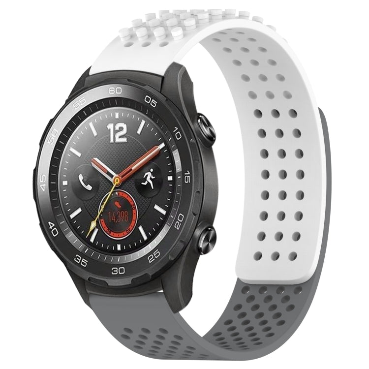 Correa de Reloj de Silicona para Huawei Watch 2 con Puntos 3D Transpirables y Orificios de 20mm (Blanco + Gris)