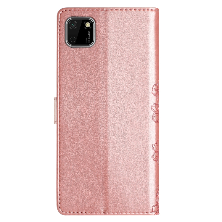 - 1x Funda para Huawei Y5P y Honor 9S Cherry Blossom Butterfly Skin Feel PU en Relieve (Oro Rosa)