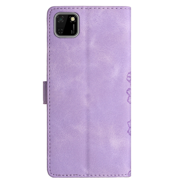 - 1x Funda para Huawei Y5P Honor 9S de PU con Mariposa y Flor de Cerezo en Relieve (Púrpura)