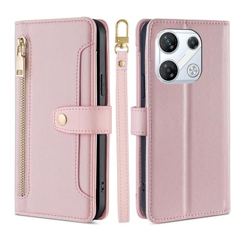 Funda de Cuero para Infinix Gt 10 Pro 5G Lite con Textura de Oveja y Cremallera Cruzada (Rosa)